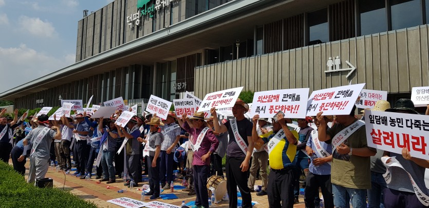 덕평휴게소 경영진과 마주한 자리에서 전국 잎담배 생산농가를 대표하여 중앙회 회장단은 잎담배 농가와 한국농촌을 보호하기 위하여 양담배 판매 결정을 철회 해줄 것을 요구하였으며, 덕평휴게소 경영진은 심사숙고하여 답변해 주기로 하였다.