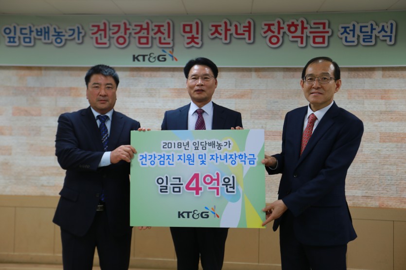 이날, 워크숍을 주최한 KT&G는 잎담배 경작농민의 건강검진과 자녀장학금으로 4억원을 전달하였으며, 중앙회 김삼수 회장은 감사의 뜻을 전하며 화합하고 협력하고 있는 현재의 분위기가 계속 유지될 수 있도록 노력하자고 당부하였다.
