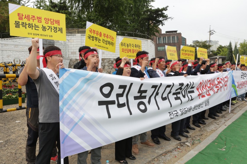 국군복지단 외산담배 허용관련 전국 잎담배 생산농민 대표자 집회