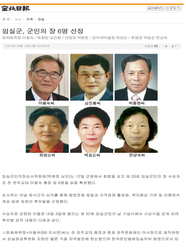 KTGO 전북연협 박종현 조합장 임실군 군민의 장 선정 > KTGO동정