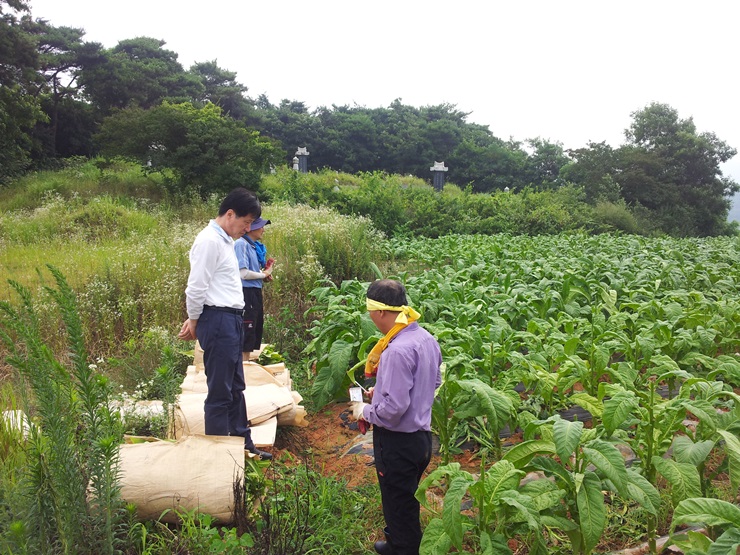 한편 KTGO 연협중앙회 서기철 상무이사는 수확지원을 하고 있는 현장을 방문하여 잎담배 농사에 고생하는 연초경작농가를 위로하였고 직원들을 격려하였습니다