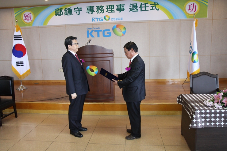 2014328KTGO 연협중앙회 대강당에서 정종수 전무이사의 퇴임식을 가졌습니다. 이로써 201141일 선임이후 2014331일까지 3년의 임기를 마무리 하게되었습니다.