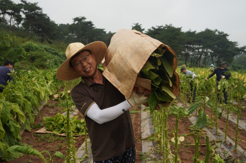 엽연초생산협동조합중앙회 임직원은 2020년 8월 7일 충남 서산시 잎담배 농가를 방문하여 수확봉사활동을 진행하였다.