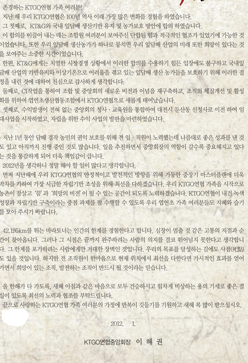 2012년도 KTGO연협중앙회장 신년사