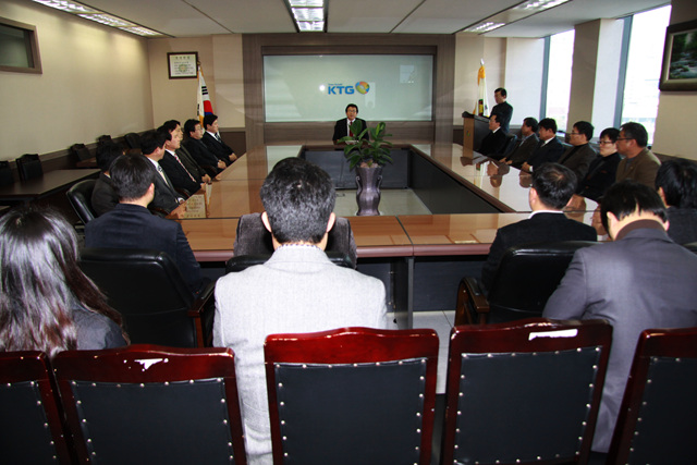 20111230KTGO연협중앙회 3층 회의실에서 전임직원이 참석한 가운데 2011년도 종무식을 가졌습니다. 종무식에서 정종수 전무이사는 지난 한 해 동안 애써주신 임직원들의 노고에 대한 격려의 말씀과 희망찬 임진년 한해가 될 수 있도록 전 임직원이 노력하자고 말씀 하셨습니다.