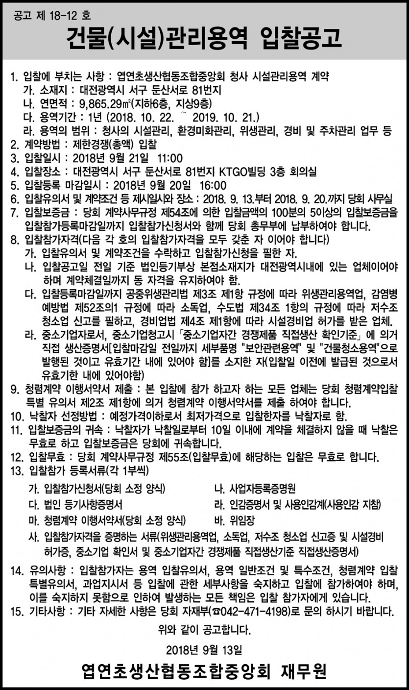 KTGO청사 시설관리용역 입찰공고 > 공지사항